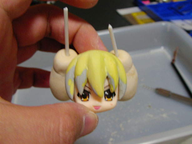 とにかくブッ刺してから考えようということで画像とにらめっこしながら穴を開け、ツインテにしてみたところ