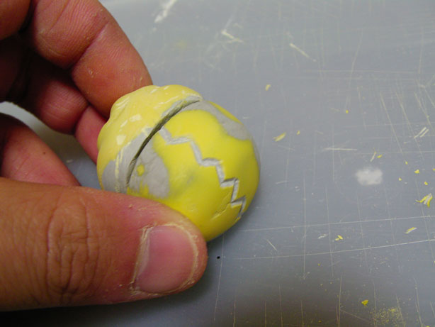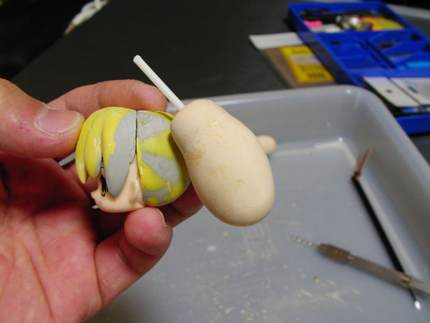 WAVEエポパテで芯を作り、もりもりくんで盛りながら削り削り作業を進める