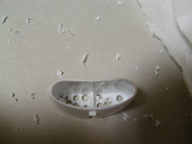 インテーク。奥の方を塗るのがめんどくさいというかこいつは分けた方が楽だろうと言うことでガリガリ掘る。真ん中の柱?を残してばっさり切り落としますよ