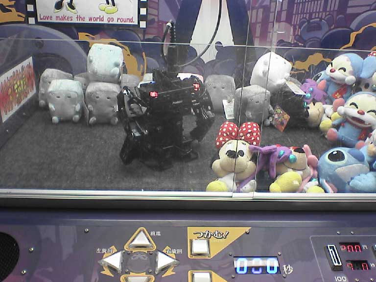 プレイヤーはアームやと網ではなく、なんと機内の「ロボ」を動かして景品をゲットする仕組みなのだ!