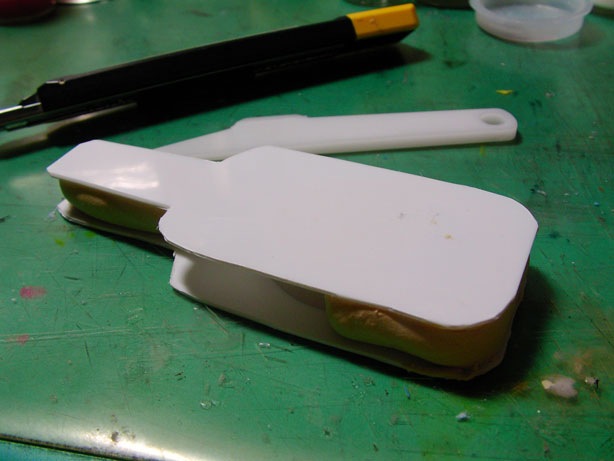 それっぽくプラ板を切ってそれぽい厚さにするためにそろそろ賞味期限がやばそうなエポパテをむにゅっと