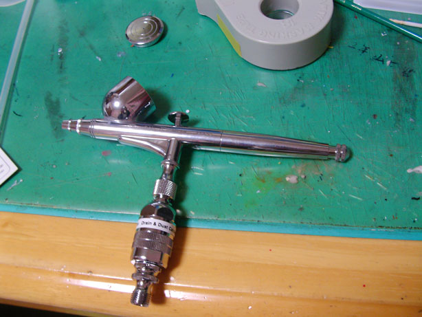 最近エアブラシが水道のごとく水を噴射するので切れそうになっていましたが、ドレンを買ってきてやると一撃で治りました