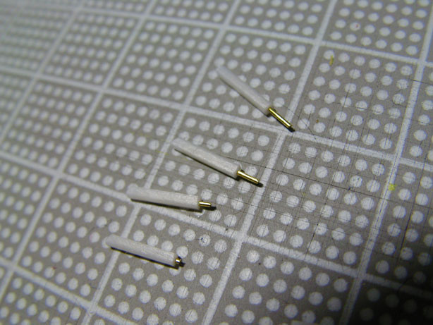 一辺1㍉の角プラ棒に直径4㍉の真鍮を入れる作業をする