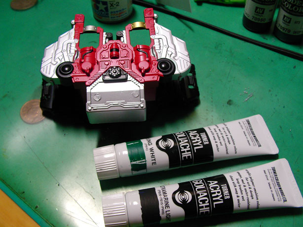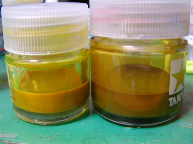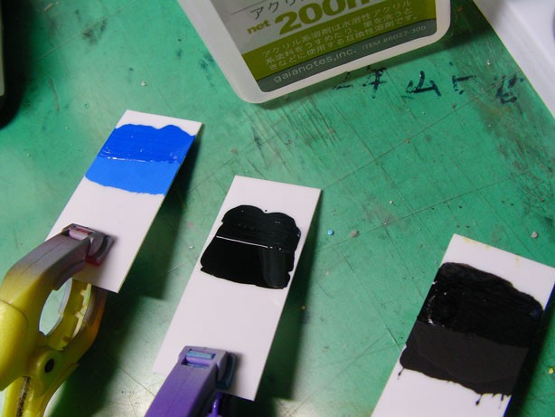 けど、純色同志で調合した場合、通常の塗料よりはるかにガッツリ食い合うので、色を作りたいのであればこれ以上にない塗料だわ