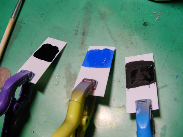 ちなみに左から、ホビーカラー、アクリルガッシュ、ファレホの順番である