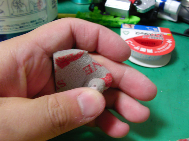 スポンジヤスリは複雑なところの穴埋めとかには、少しくしゃくしゃにしてからやると、非常に滑らかになるぞ!