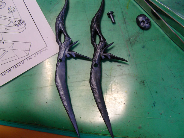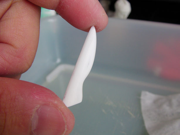 なるほど、このカッチリした堅さ故にシャープな造形が出来るわけだな。見てくれこの先端を…って指で隠れてみえねぇ!!まぁエポパテで作れば、既にこんな風に掴んだ段階で先っぽ折れてます