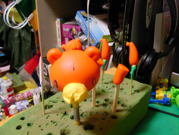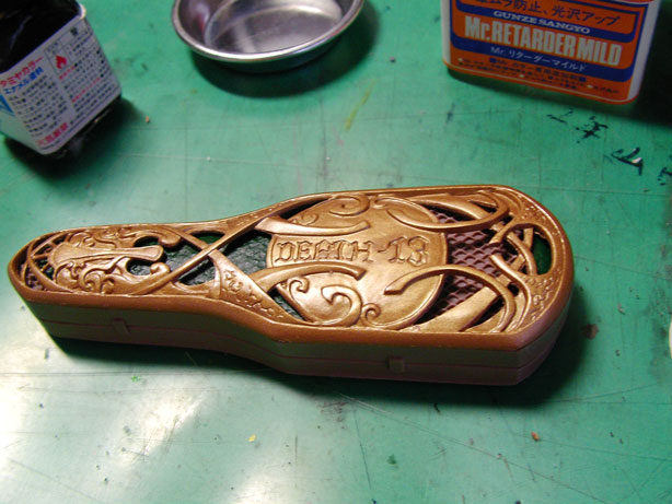 こいつも、ちゅーかなんの素材で出来てるんだかいまいち解りづらいが、表面の黄色?部分と中の編み目部分に汚しと墨入れを施す