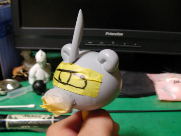 目の部分が彫ってあったの、こいつは光硬化パテで埋める