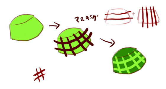 とりあえず前回の薄い緑と濃い緑の交差点に更に薄い緑をかけるという作業