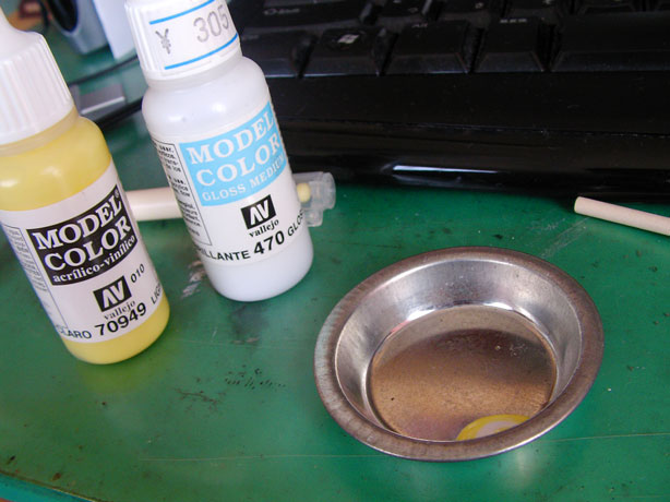 色はレモンイエローにグロスメディウム、薄め液を少々