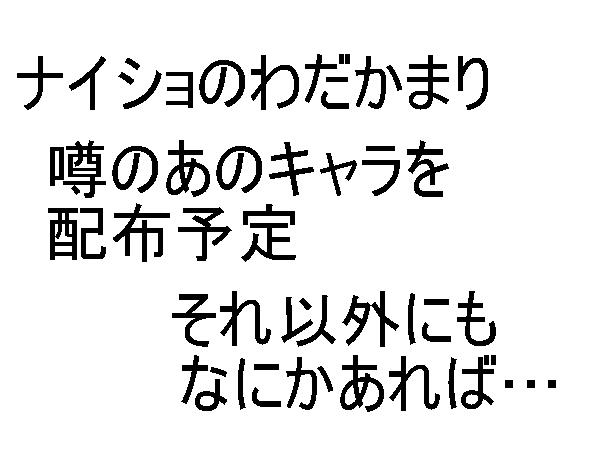 というわけで、サークル名『ナイショのわだかまり』では「ttoさんとこのマスコット」を出します…って、よく考えたらttoさんに許可もらってねーや