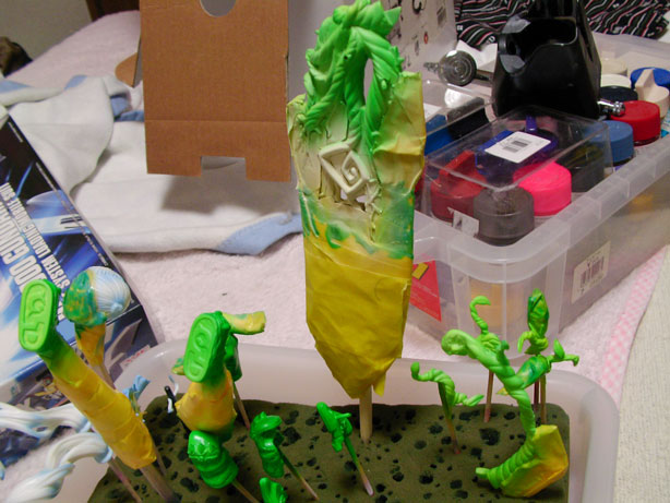 一応下地を黄色、白部をクリアで半分薄めた白、緑部を純色グリーンに純色イエローを混ぜたものをクリアで3倍ほど薄めたもので塗装。
